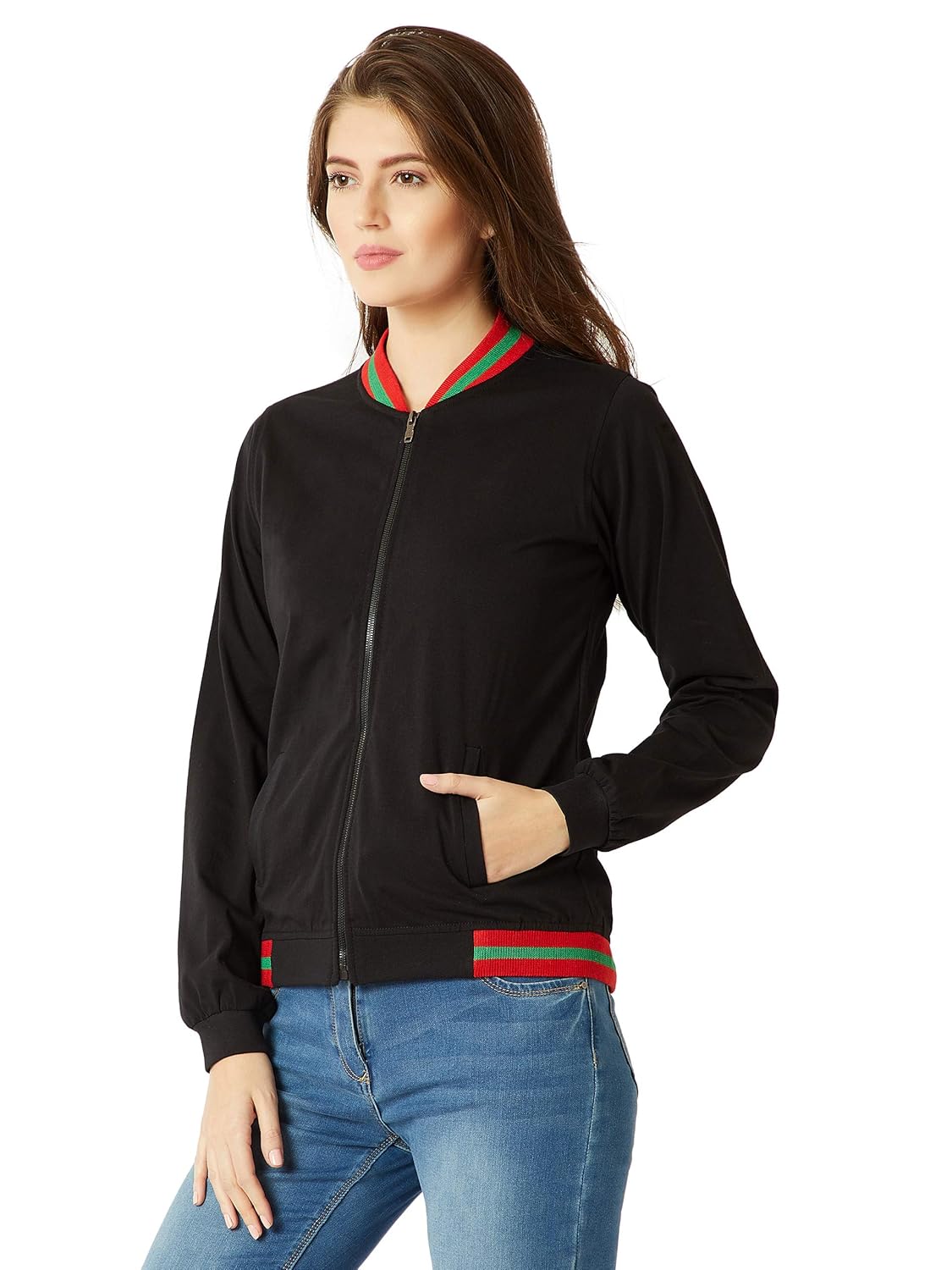 Generic Name: Miss Chase Women’s Black Cotton Bomber Jacket(MCAW18JKT02-52-62-02_Black_X-Small)