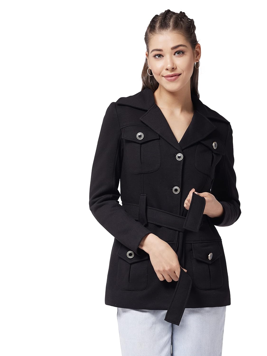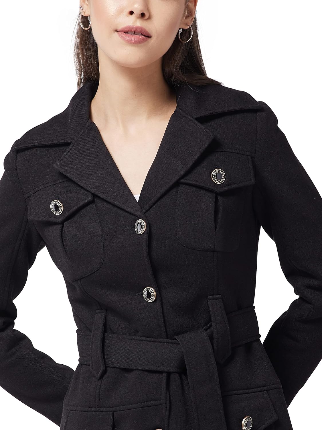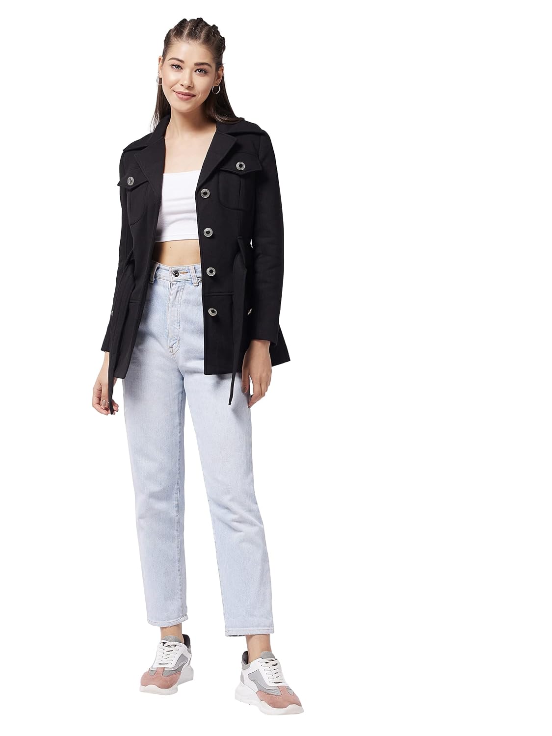Generic Name: Miss Chase Women’s Black V-Neck Full Sleeve Solid Longline Jacket (MCAW21JKT03-44-62-02,Black,XS)