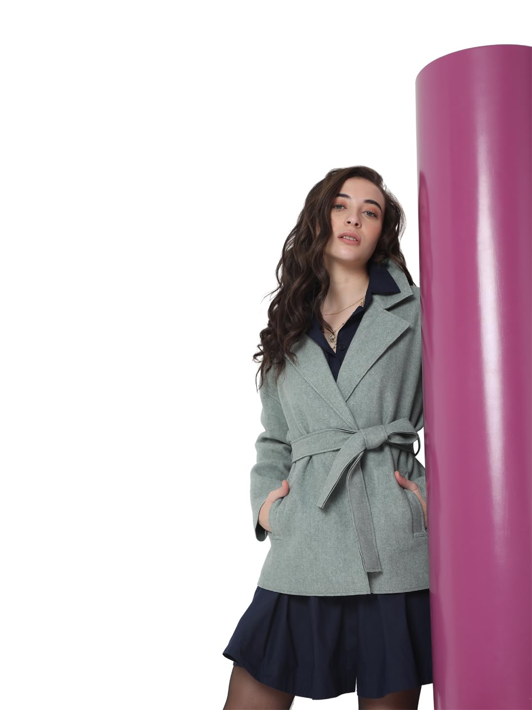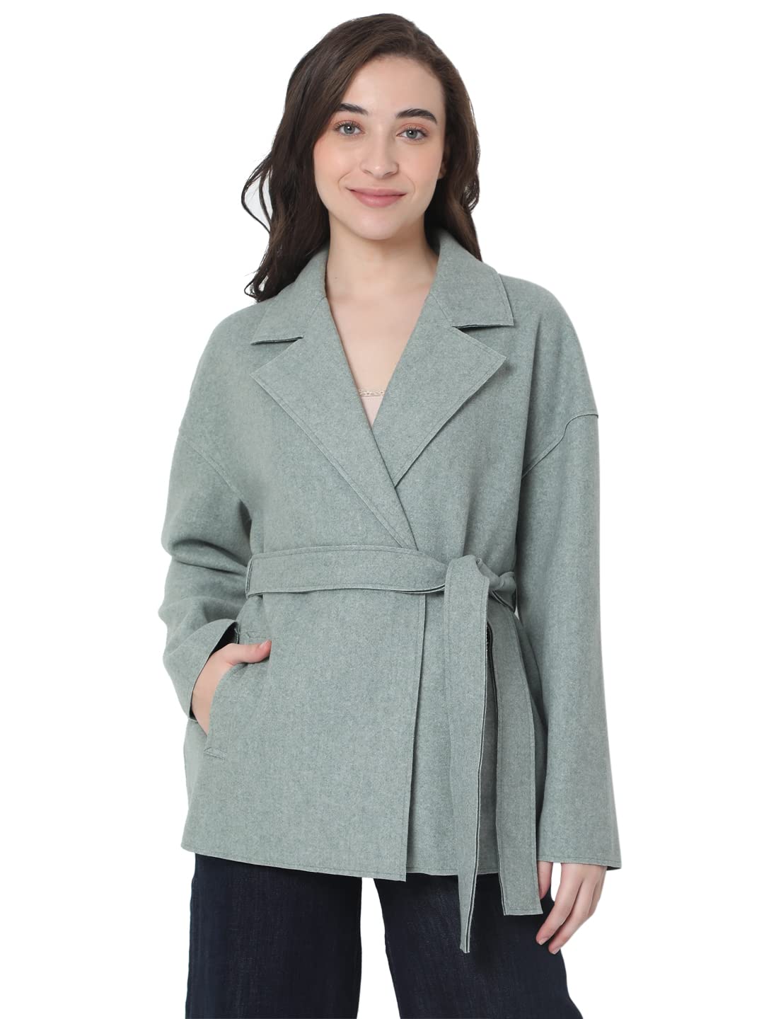 Vero Moda Womens 80%Polyester 20%Polyester – Recycled Regular Fit Solid Green Coat