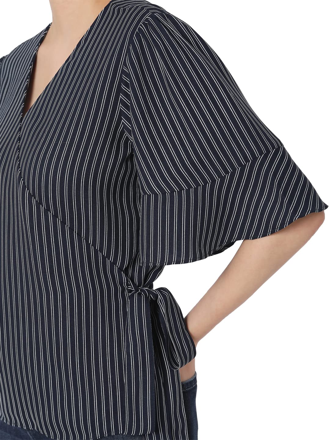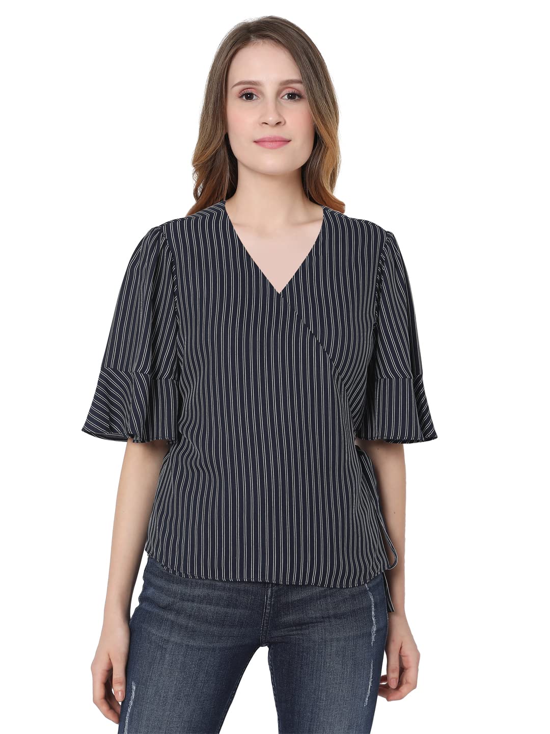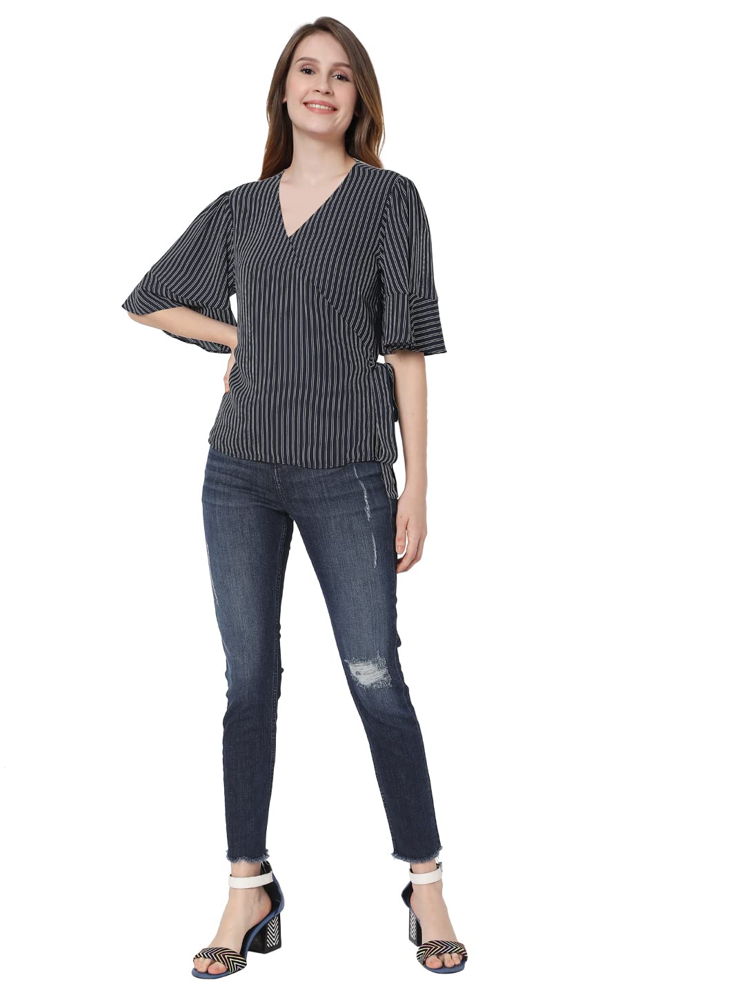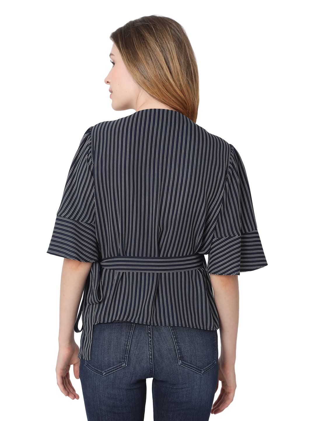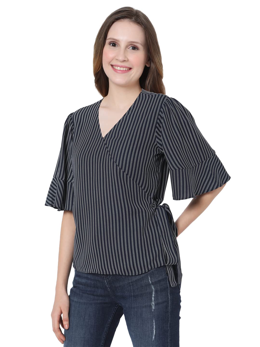 Vero Moda Women Striped 100%Polyester Short Sleeves Casual Blue Top