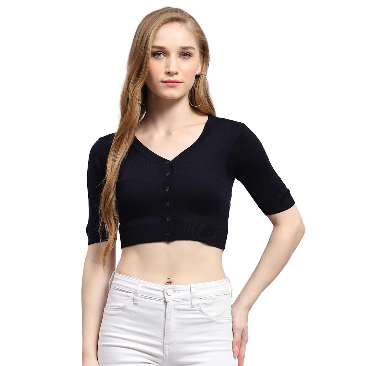 Womens Solid V Neck Half Sleeve Blouse Sweater Top